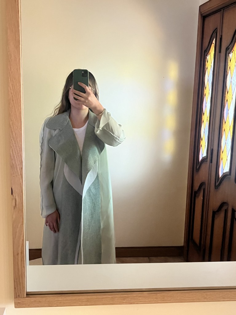 With every coat I create, I strive to learn and improve. Recently, I experimented with lining a coat using a fabric reminiscent of silk chiffon or organza. However, I encountered a challenge as the lining seams began to fray inside the jacket. This issue arose due to my decision not to use French seams, a detail I now realise would have prevented this problem.